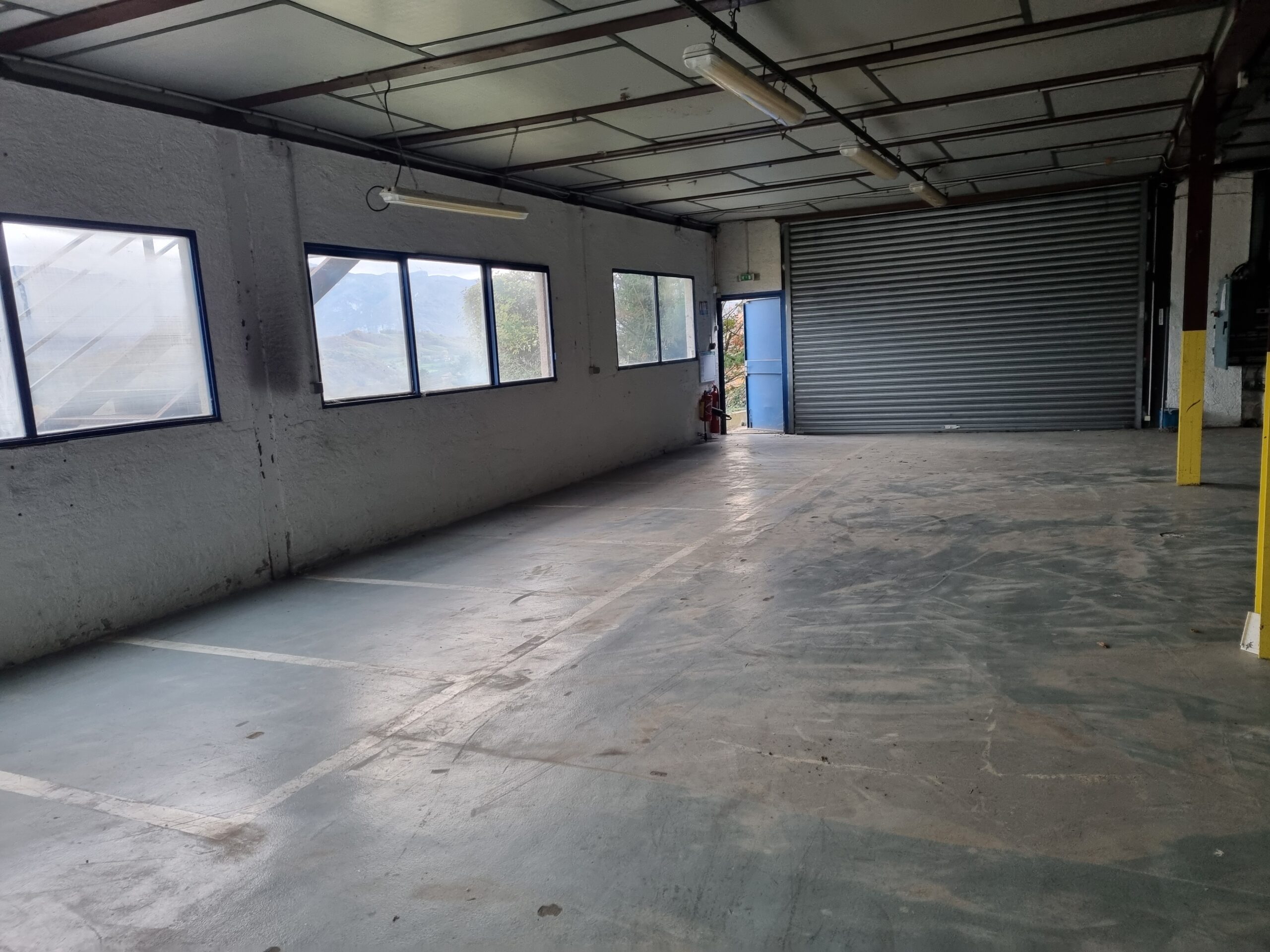 La porte sectionnelle de 3,5 m sur 2,5 m assure un accès pratique pour vos véhicules et marchandises. Le grand bandeau vitré permet de voir le Vercors tout en travaillant. Le local dispose d’une installation en électricité en triphasé, de sanitaires et du raccordement à la fibre.