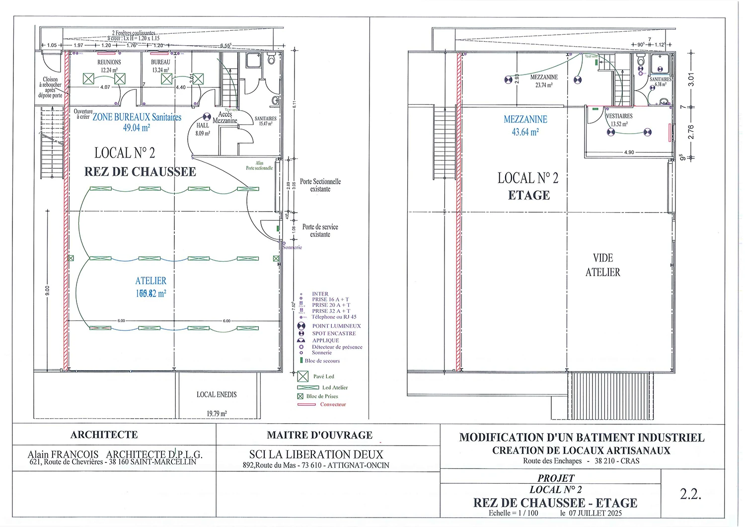 Avec 537 m² au total, dont 433 m² d’atelier ou de stockage, ce local dispose de 8 places de parking et d’une hauteur sous plafond de 4,37 m.